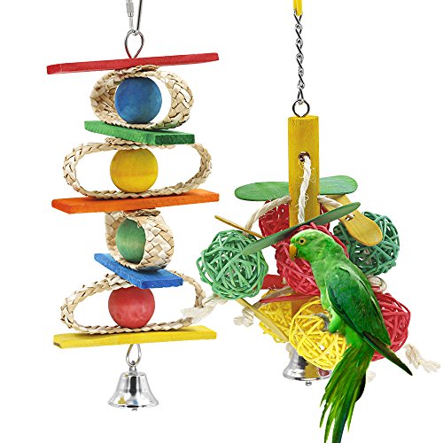 - Parrot chew toys, cage climbing toys, bell parrot toys, bright color, shapes, for likes to gnaw bite parrots enjoy the release Mozui desire.