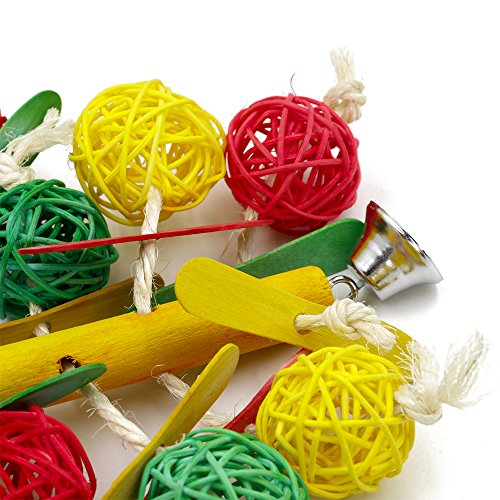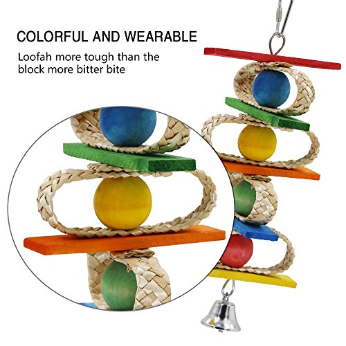 Parrot Toy, Rusee Parrot Hanging Toys Colorful Rattan Ball Bird Cage Loofah Sponge Plant Fibre Pet Bird Conure Macaw Cockatiel Cockatoo Chewing Toy (2 Pack)