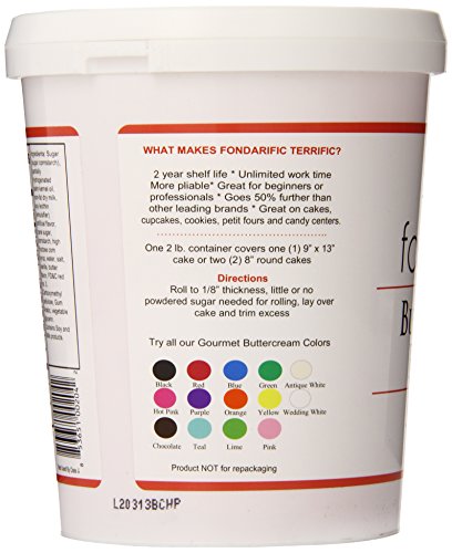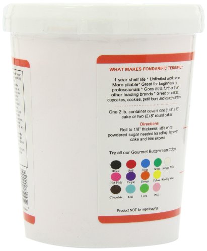 2, 5 or 10 lbs. of the Worlds Best Gourmet Fondant; Great on cakes, cookies, cupcakes; candy centers, petit fours and fruit flavors are a great activitity for kid's birthday parties. They can decorate their mini cakes, cookies or cupcakes.