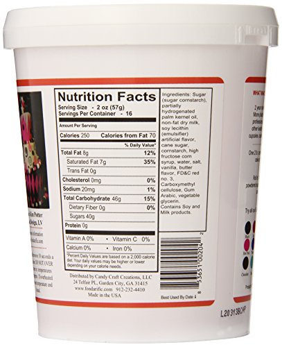 First orginial Buttercream Flavor; No Trans Fats; Glutten Free; Fruit flavors are a good source of vitiam C; 1 year shelf life p-nut and tree nut free; contains milk product