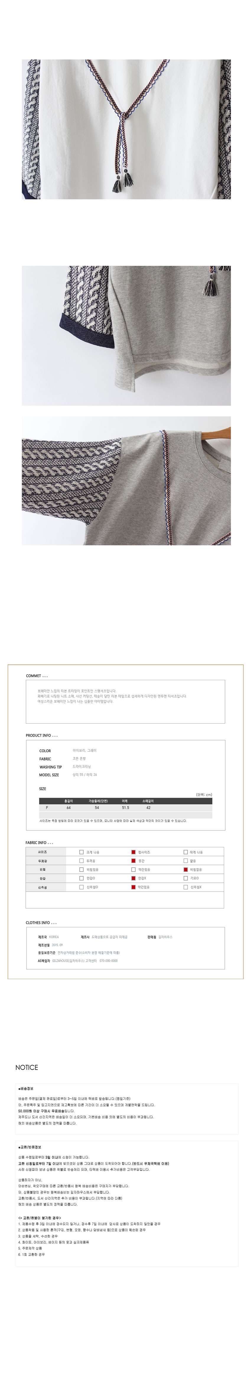 Free(단면): 가슴둘레 54cm, 어깨너비 51.5cm, 소매 42cm, 총장 64cm