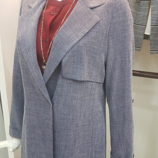 힙을 덮어 주는 기장감과 턴업 소매 디테일이 편안하게 걸쳐 입기 좋은 자켓