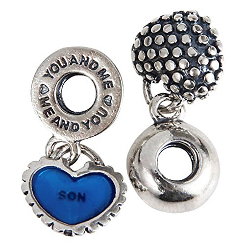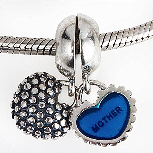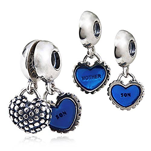 Authentic 925 Sterling Silver Dangle My Heart of Mother and Son Blue Enamel for European Charm Bracelets Each European style sterling silver mother son charm bead is made by high skilled worker, perfect processing, all handmade, fit perfectly on major brand European chains as well as our very own interchangeable bracelets, necklaces and bangles too.