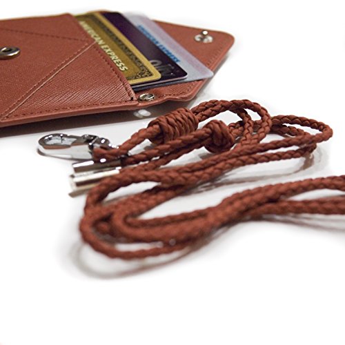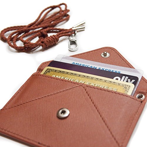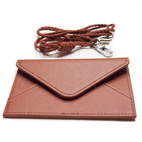 ego&yogo Flat ID Card Necklace Holder - Perfect for Badge, Key Card, Student ID, Employee ID, Metro Card, and Credit Card Holder with Detachable Soft Braided Lanyard Neck Strap (Brown)
