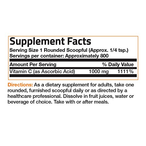 OUR BEST-SELLING VITAMIN C! Soluble fine crystals. One furnished scoopful, approx. 1/4 teaspoon, supplies approximately 1,000 mg. vitamin C in the form of ascorbic acid. Add fruit juice or water. Naturally tart taste.