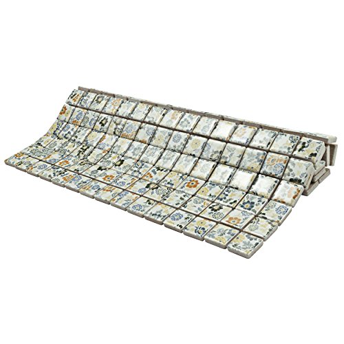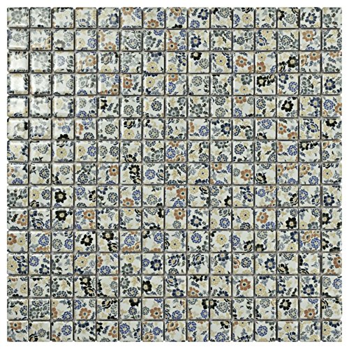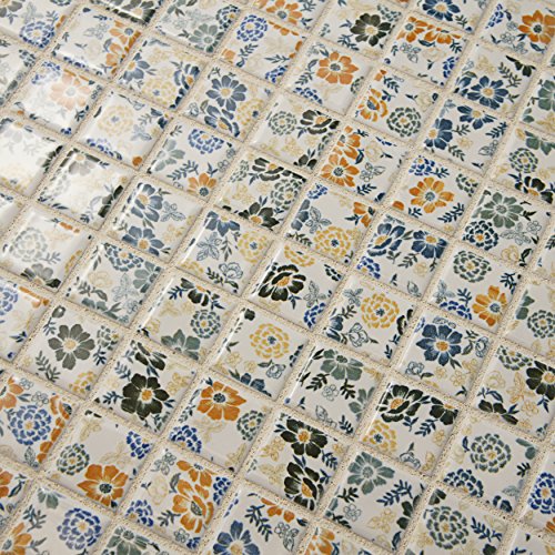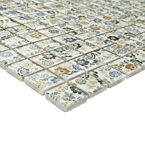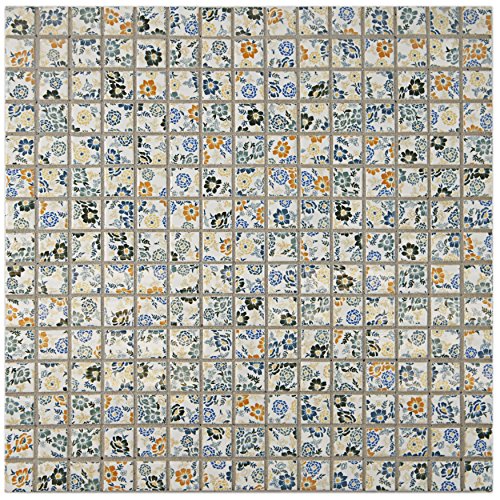 SomerTile WTCSPRFL Spring Floret Glazed Porcelain Mosaic Floor and Wall Tile, 12" x 12", White/Yellow/Orange/Black/Blue/Green