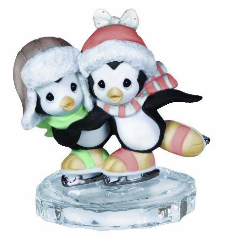 - Side-by-side, two porcelain penguins share a special moment of togetherness upon the ‘ice’ made of clear resin