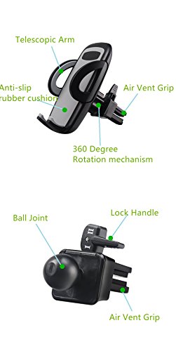 Air Vent Phone Holder Car Mount with Quick Easy Release Button and 360 Degree Rotation Cradle for iPhone 7 Plus/7/6s Plus/6s/SE/5, Samsung Galaxy Note, Nexus and Most 4-6 Inches Smartphones