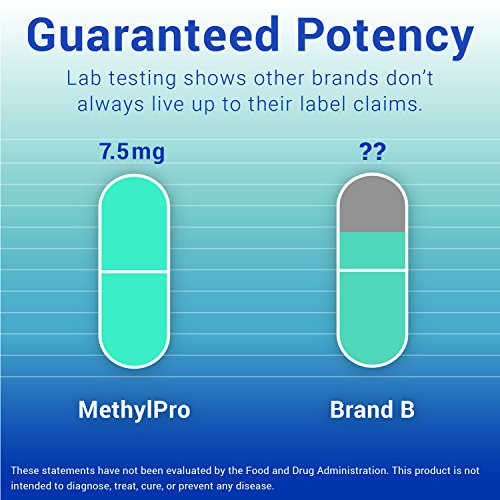 GUARANTEED POTENCY - Lab testing indicates that common methylfolate supplements can be 25 percent less potent than claimed. Our careful planning and superior understanding of methylfolate guarantees a full 7.5mg of professional strength methylfolate, every time.*