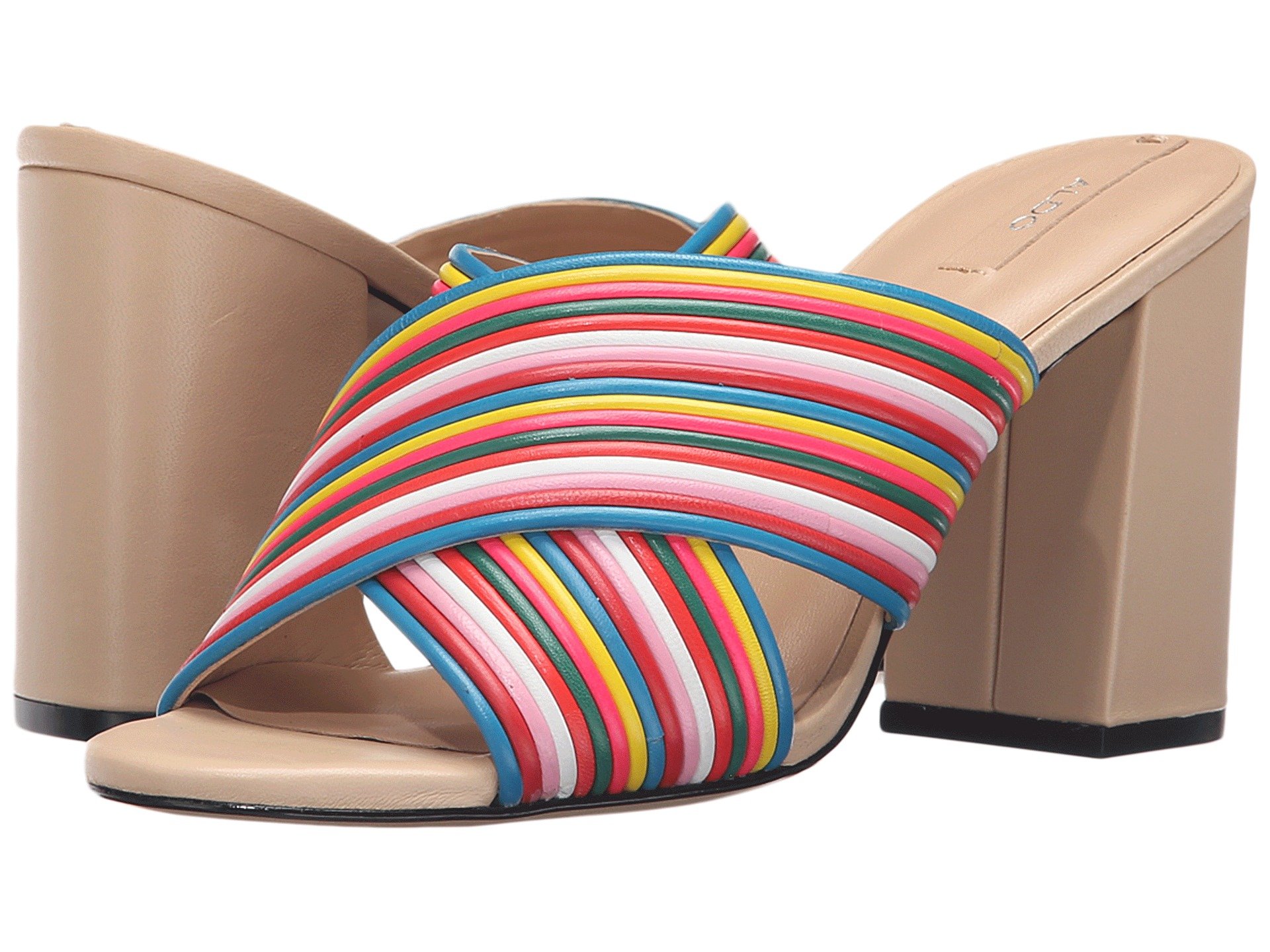 | Product Information SKU: #8730759With bright hues and statement heel, these Loani sandals are the ultimate go-to for the warm seasons.Multi-colored synthetic upper.Easy slip on construction.Wide crisscross straps complement the open toe.Leather lining and padded insole.Wrapped block heel.Man-made sole.Imported.Product measurements were taken using size 38.5 (US Women's 8), width B - Medium. Please note that measurements may vary by size.Weight of footwear is based on a single item, not a pair.Measurements: Heel Height: 3 1?4 in Weight: 11 oz |