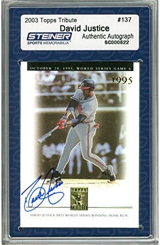 David Justice Signed 2003 Topps Card - Braves - Holo - Oct 28 1995 WS game 6 - Swinging through (Slabbed by Steiner)