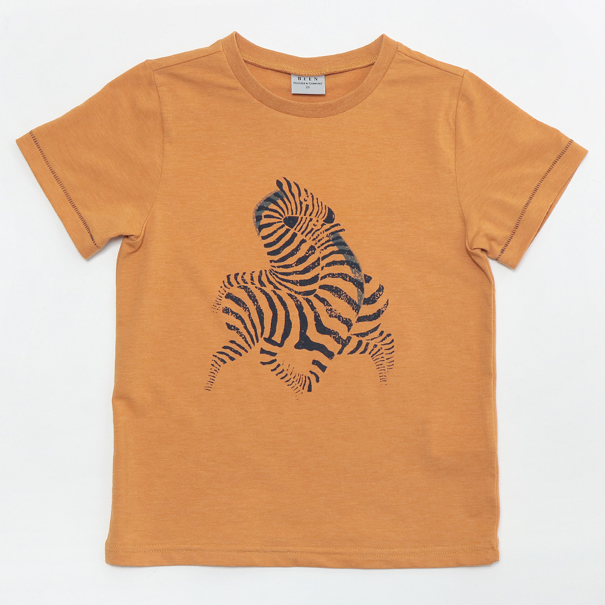 얼룩말 모양 프린트가 포인트인 머스터드 컬러의 티셔츠 아이템입니다.