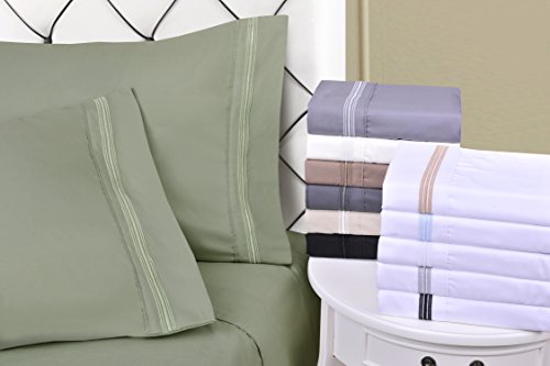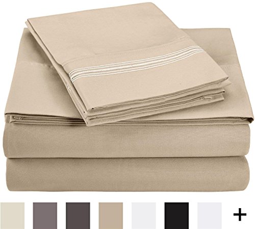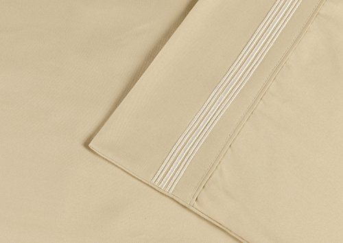 Superior 5-Line Sheets with Embroidered Pillowcase, Luxurious Silky Soft, Light Weight, Wrinkle Resistant Brushed Microfiber, Twin XL Size 3-Piece Sheet Set, Tan