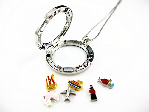 BRCBeads Excellent Silver Plated 30mm Round Glass Crystal Memory Living Floating Charms Locket Necklace+24 Inch Box Chain with Extension Chain and Losber Clasp 1pcs per Bag Best DIY Jewelry Accessories