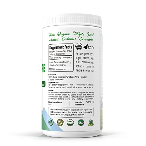 Certified Organic Tribulus Terrestris Powder 16Oz - 1Lb. Natural Men and Women Health Support. USDA Certified. Raw Superfood. 100% Natural Herbal...