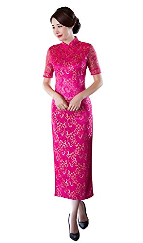 -. Title : (アンココ)Angcoco Women's Short Sleeve Lace Maxi Cheongsam Dress China Qipao