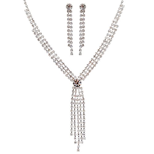 -. Title : ACCESSORIESFOREVERブライダルウェディングプロムジュエリーセットクリスタルラインストーンClassyトレンディYドロップネックレス