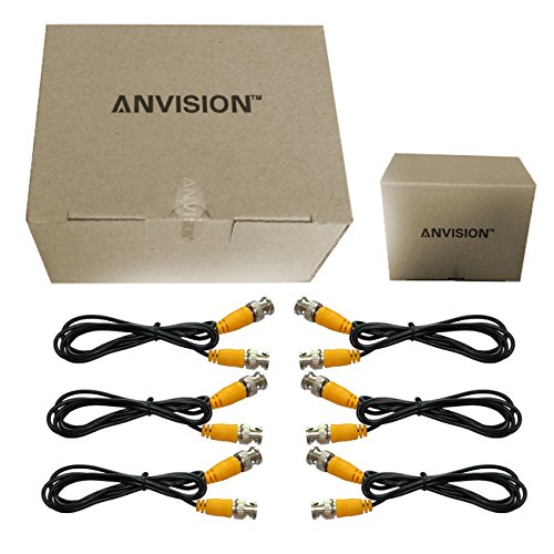 (ANVISION)/Accessories Supplies/Cables/DIRECT FROM USA/ANVISION 6-pack Black 1m 3.3ft BNC Male to BNC Male Jumper Cable with Yellow Connector for CCTV...