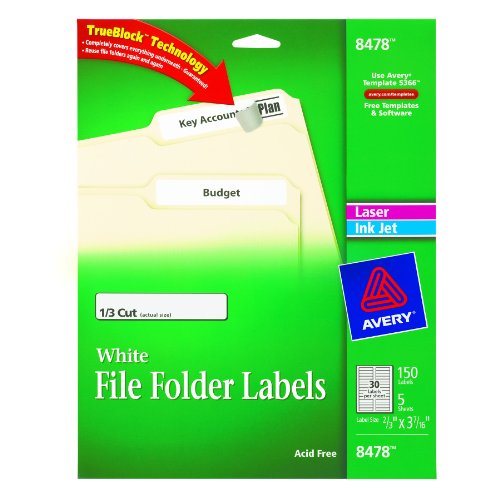Avery File Folder Labels for Laser and Inkjet Printers, 0.66 x 3.43 Inches, White, Pack of 150 (8478)