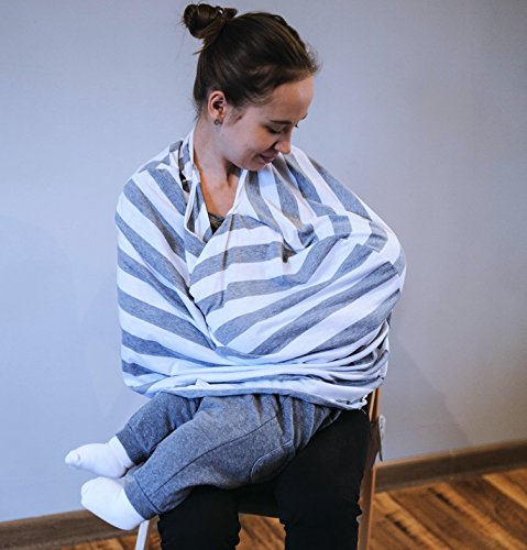 Baby Car Seat Cover Canopy and Nursing Cover Multi Use Stretchy 3 in 1 For Girls & Boys Ideal Grocery Cart Cover and Highchair Cute Baby Shower Gift