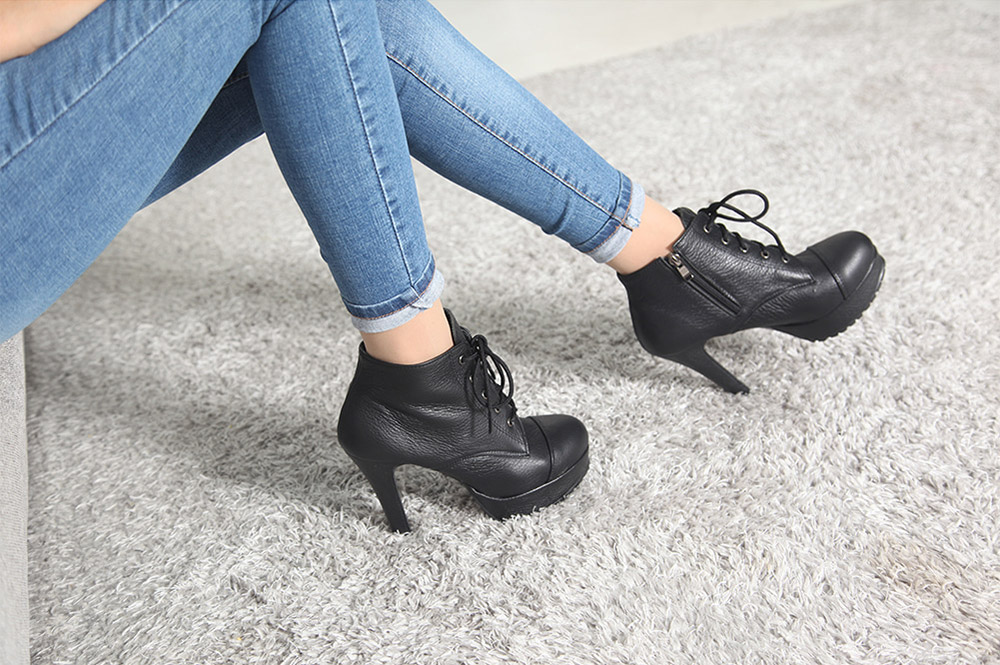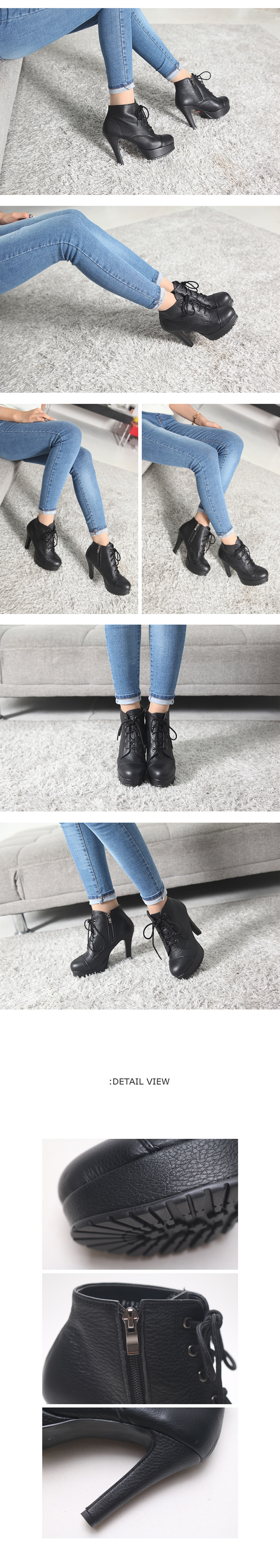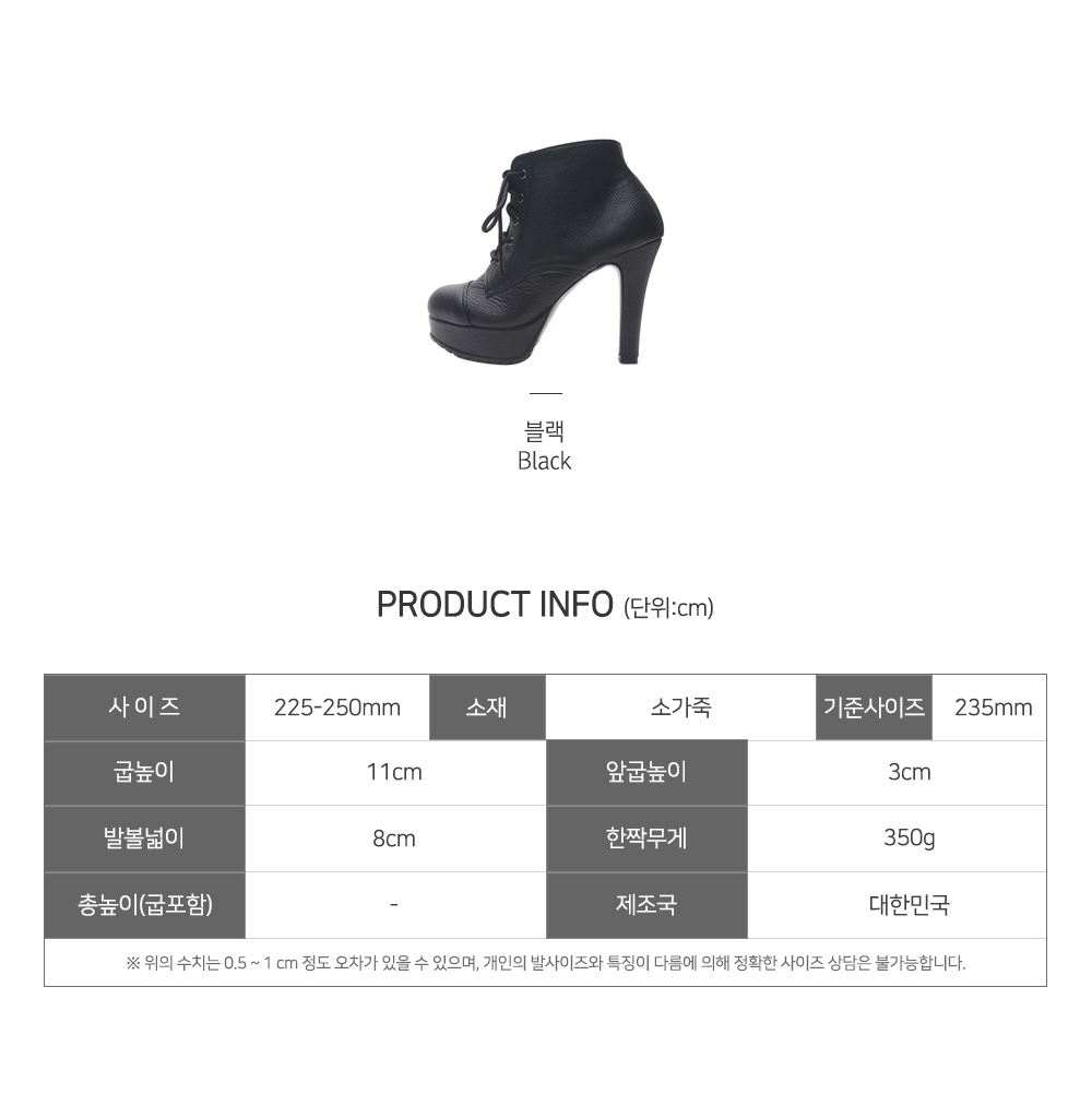 사이드에 지퍼클로징처리로 신고 벗기가 편안하게 제작되었으며,아찔하게 쭉 뻗은 11cm의 굽과 3cm의 가보시굽이 조화를 잘 이뤄 편안하게