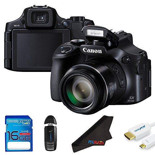 Canon PowerShot SX60 HS 16.1MP Digital Camera + 16GB Pixi-Starter Accessory Bundle