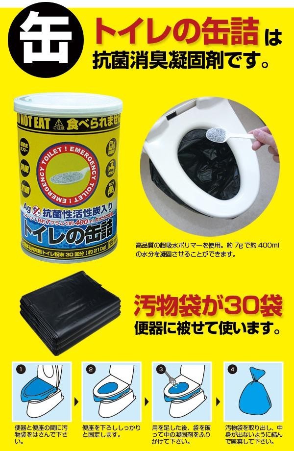 | セット内容 | (トイレの缶詰(30回分・約210g)、汚物袋×30袋、アルミブランケット)×12セット |