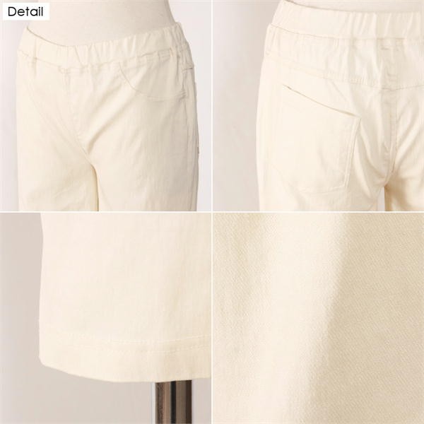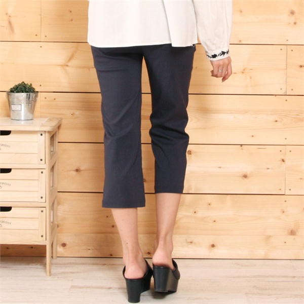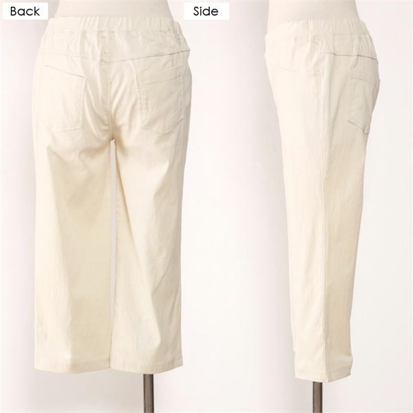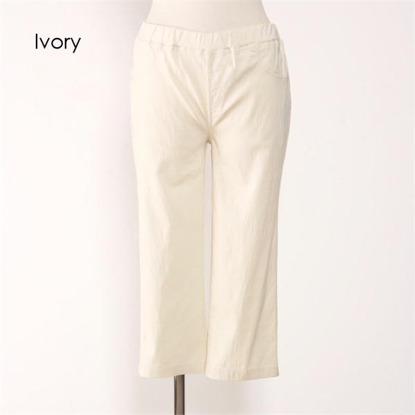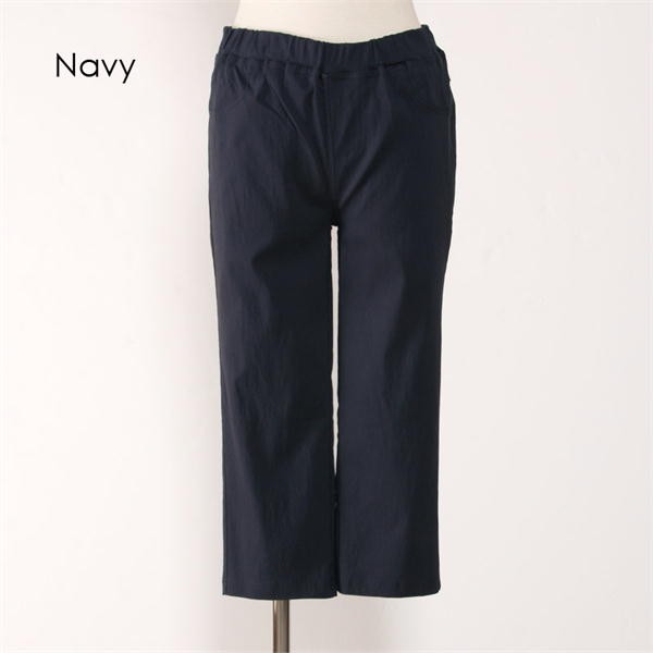 サラッとした素材で吸水速乾機能があり、お洗濯後の乾きも早いし梅雨や夏に嬉しい1本!ふくらはぎが隠れる丈で露出を抑えながらも涼やかな印象で股上も少し深めに設定しているので、幅広い年代の方にオススメなアイテムです!ウエストは総ゴム仕様です。