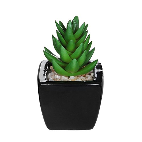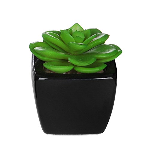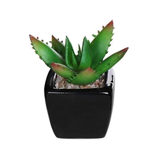 Bring modern flair combined with garden charm into your house with this set of 4 petite artificial succulent black ceramic plant pots.