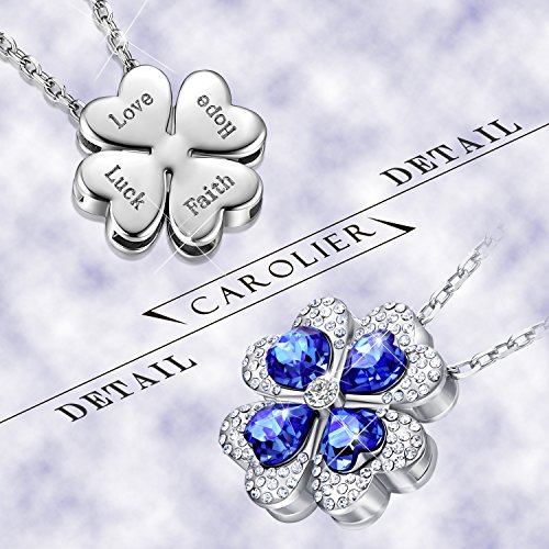 -. Title : Swarovski Crystal Blue Necklace - CAROLIER JEWELRY Four Leaf Clover Design Pendant Necklaces - Symbol of Good Luck - Perfect Gift for Mothers Day, Christmas Day, Anniversary Day, and Birthday