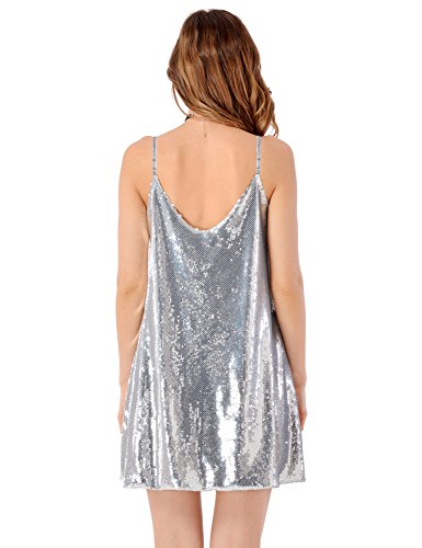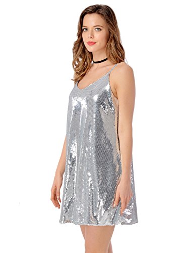 Grapent Women's Sexy Silver Sequins V Neck Mini Slip Loose Club Party Dress Size Medium (US 8-10)