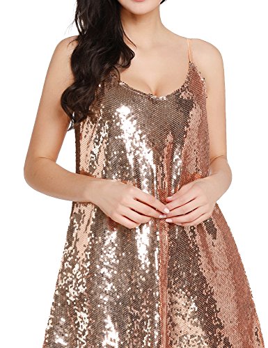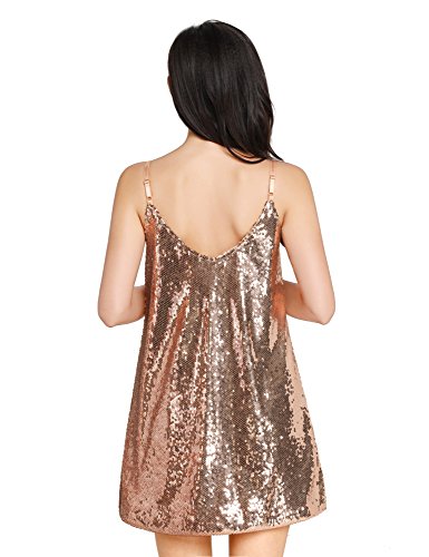 Grapent Women's Sexy Champagne Sequins V Neck Mini Slip Loose Club Party Dress Size Medium (US 8-10)