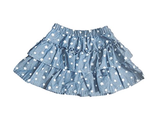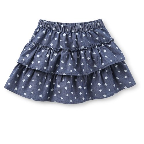 For sunny days and fireworks, she'll need this lightweight denim star ruffle skirt in chambray wash. Pair with tees and tanks for a look that sparkles! (psst...separate bike short for extra coverage!) Separate cotton bike short for extra coverage Easy-on, no-pinch elastic waist Lightweight denim with chambray wash Tiered ruffles Zoom in to see star print