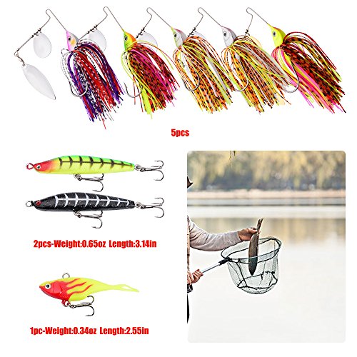-. Feature : *GREAT VALUE COLLECTION* Baikalbass 7 Different Fishing Lures Sets Collect Plastic Hard Baits, Soft Worm Baits, Spoon Lures, Fishing Line and Free Fishing Tackle Box, ect / *HIGH QUALITY & LIFELIKE DESIGN* Adopts High-quality Metal/ABS Material,Eco-friendly, Tasteless, Non-toxic and Anti-dust. With Spinner Bait Shaking, the Effect of Shining Light and Metal Sound will Greatly Attract Big Fish / *SIZE AND COLOR* Different Size And Colors, can Tempt the Attention of Different Level Water Fish / *AMAZING IDEAL GIFTS* Whether For Your best Fishing Buddy, Your Significant Other, Our Baikalbass Fishing Tackle Set Is The Best Present You Can Think Of. Extremely Practical, Affordable and Impressive / *WE 100% STAND FOR OUT PRODUCTS* To Provide Best Fishing Experience For You. Wish You Spend Great Time With Baikalbass Fishing Tackle Set