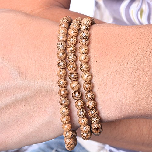 MJARTORIA Herren Damen Armband Lebensbaum Sandelholz Kugel Strang Holz Perlenarmband Surferarmband Wickelarmband mit Schleife