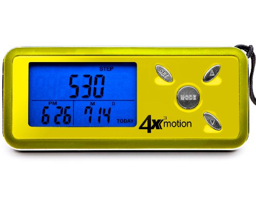 -. Feature : Records steps, distance, speed, calories and time with the world's most advanced Tri-Axis technology. / 3 Recording Modes: Today, Split & Total -- with a split screen display for multi-data views. / New 3D Tri-Axis Sensor (X, Y, Z plane detection) provides superior accuracy in any position. / Counts up to 1 million steps with 7-Day Memory, and includes a built-in Clock, Calendar & Sports Timer and Auto Sleep Mode technology. / Used by professional athletes, the 4x3motion boasts an ultra slim design that fits in any pocket, and features a blue backlight for night viewing. 100% Satisfaction Guaranteed.