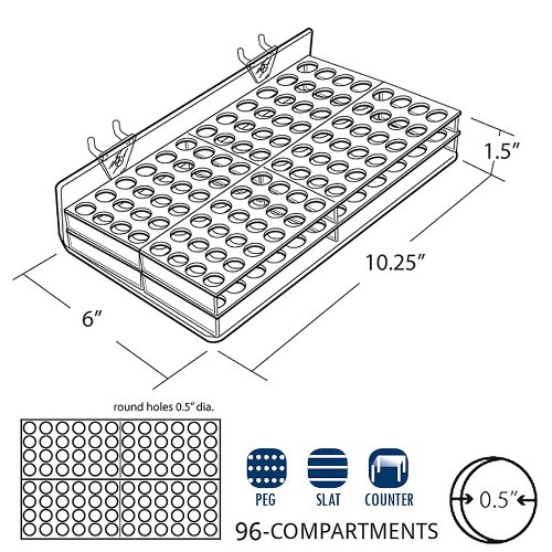 Azar Displays 225596-2pack 96-Compartment Cosmetic Tray for Pegboard, Slatwall/Counter Top (Pack of 2)