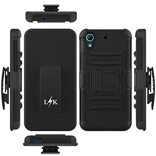 HTC Desire 626 / 626s Case, LK Heavy Duty Black Armor Holster Defender Full Body Protective Hybrid Case Cover with Belt Clip for HTC Desire 626 / 626s