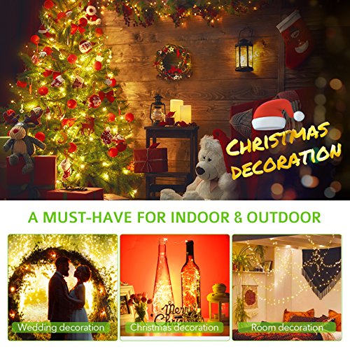 🎅NOT EASY TO BE BROKEN: WITH WARM WHITE (CHAMPAGNE GOLD) COLOR. The lights strand is durable because it has no welded points. Moreover, the warm white (champagne gold) color create romantic atmosphere.
