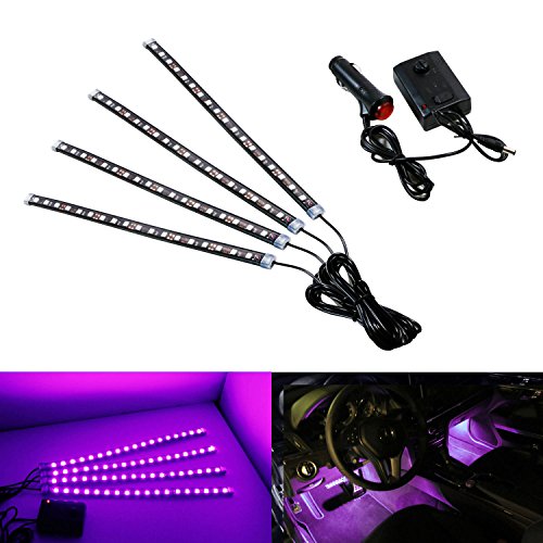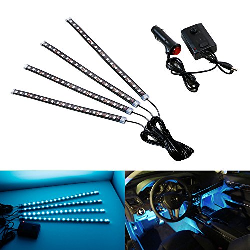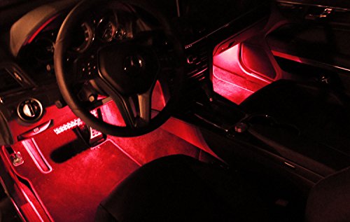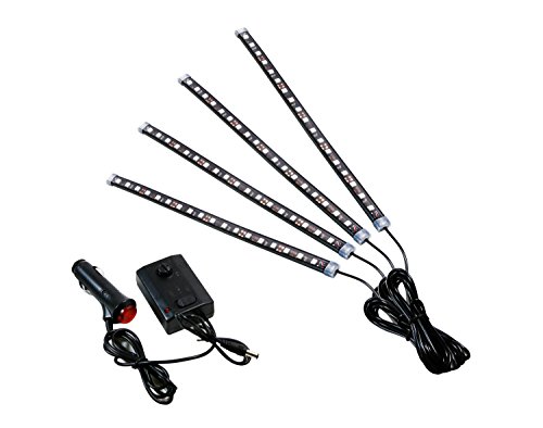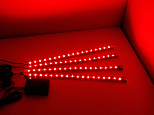 iJDMTOY 4pc Sound Active Bright Red LED Car Interior Lighting Kit | LED Accent Light, 4 x 12"