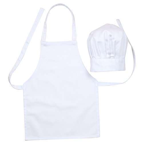 2 Pack-White kids’chef apron and hat set for cooking,baking, painting or decorating party (3-8Years)