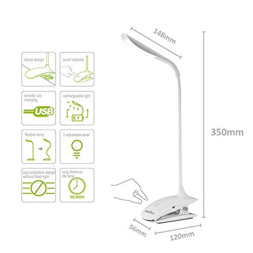 HandAcc Clip Desk Lamp Dimmable LED USB Reading Light with Sturdy Gooseneck for Desk, Bed Headboard and Computers(4W, White)