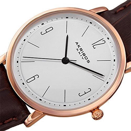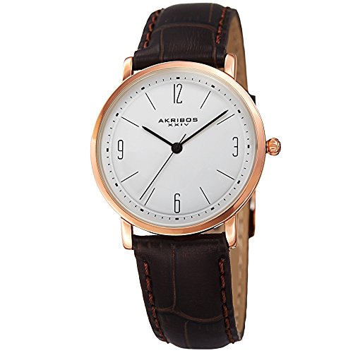 Akribos XXIV Women's Quartz Rose-Tone Case with Rose-Tone Dial on Brown Alligator Embossed Genu...