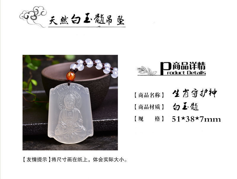 开光天然白玉髓尊款阿弥陀佛十二生肖属狗属猪本命佛守护神吊坠