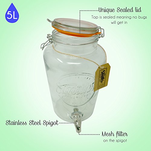 5 LITRE DRINKS DISPENSER WITH STEEL SPIGOT, WIRE MESH (TO STOP BLOCKAGES) AND GIFT TAG, IT'S THE ULTIMATE DRINKS COOLER - BY SMITH'S MASON JARS