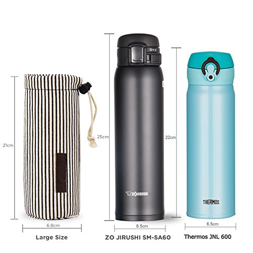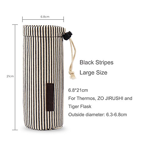 Bottle Sleeve Bottle Cover Thermos Flask Tiger Flask Zojirushi Canvas Cover Protective Cover with Holder Strap Large Size - Black
