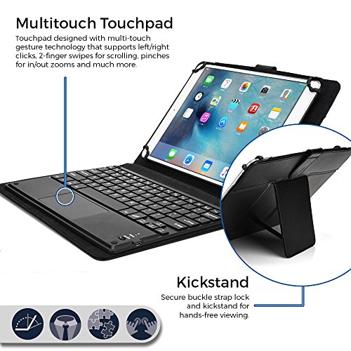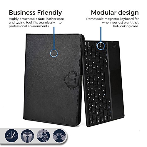 2-in-1 LEATHER FOLIO CASE WITH STAND & DETACHABLE KEYBOARD - multi purpose functionality > use as compact keyboard folio case or classic folding folio tablet case. Foldout stand supports hands free screen display. Remove magnetic keyboard tray to turn keyboard cover into classic portfolio case. Premium faux leather protective exterior provides durable, rugged, shockproof cushion when dropped. Soft suede microfiber interior protects screen from scratches and breaking.