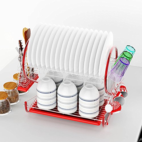 -. Title : Homdox 2-Tier Drying Rack Kitchen Stainless Steel Dish Rack with Drainboard, Dish Drying Rack 16 L x 9.6 W x 15.6 H Inches