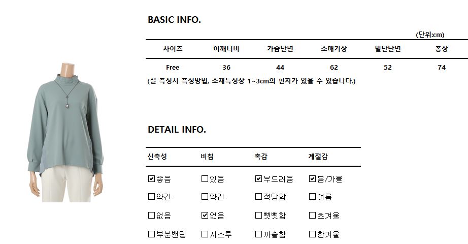 목선의 가벼운 주름선이 여성스러우면서도 편안한 스타일입니다