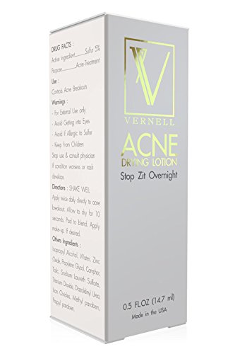 -. Binding : Misc. -. Brand : VERNELL NEW YORK -. Color : Pink -. EAN : 0820103843652 -. Feature : acne treatment / end zit -. HazardousMaterialType : Sealed Lead Acid Battery -. IsAdultProduct : 0 -. Label : Vernell New York Inc. -. Manufacturer : Vernell New York Inc. -. Model : VL750U -. MPN : vl215 -. NumberOfItems : 1 -. PackageQuantity : 1 -. PartNumber : vl215 -. ProductGroup : Beauty -. ProductTypeName : BEAUTY -. Publisher : Vernell New York Inc. -. Size : 1.5 oz. -. Studio : Vernell New York Inc. -. Title : Stop Zits Over Night Acne Drying Lotion (1.5 oz.) -. UPC : 820103843652